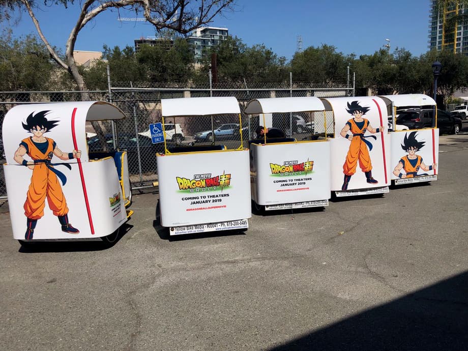 The Spirt of Halloween bicycle cabs were promoting the Dragon Ball 2018 North American tour and went full Super Saiyan God Super Saiyan Blue.