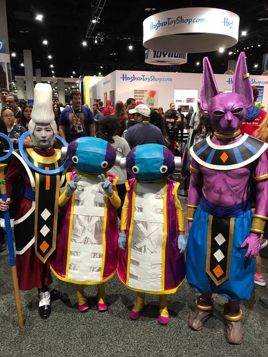 This family cosplyed as Beerus, Whis and the two Omni-Kings from Dragon Ball Super.