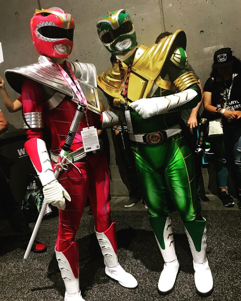 This Red and Green Ranger cosplay is brought to you by @whitewalkercosplay and @rex_armstrong_props