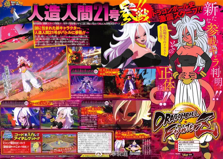 V-Jump magazine continues to be the source for Dragon Ball FighterZ reveals as the latest issue includes a shocker that Android 21 will have a Majin form in the upcoming fighter from Arc System Works.  In addition, this alternate form will also be a playable character.