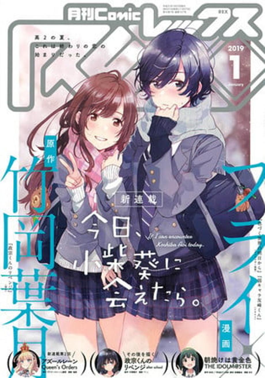 The author behind the romantic comedy manga series "Masamune-kun's Revenge", Hazuki Takeoka, has launched a new manga series titled "If I can encounter Koshiba Aoi today". The new series debuted in the Monthly Comic Rex magazine's January 2019 issue. The artist Fly is providing the illustrations for the manga.