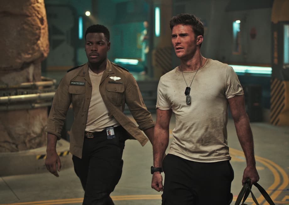 (L to R) JOHN BOYEGA as Jake and SCOTT EASTWOOD as Lambert in "Pacific Rim Uprising." The globe-spanning conflict between otherworldly monsters of mass destruction and the human-piloted super-machines built to vanquish them was only a prelude to the all-out assault on humanity.