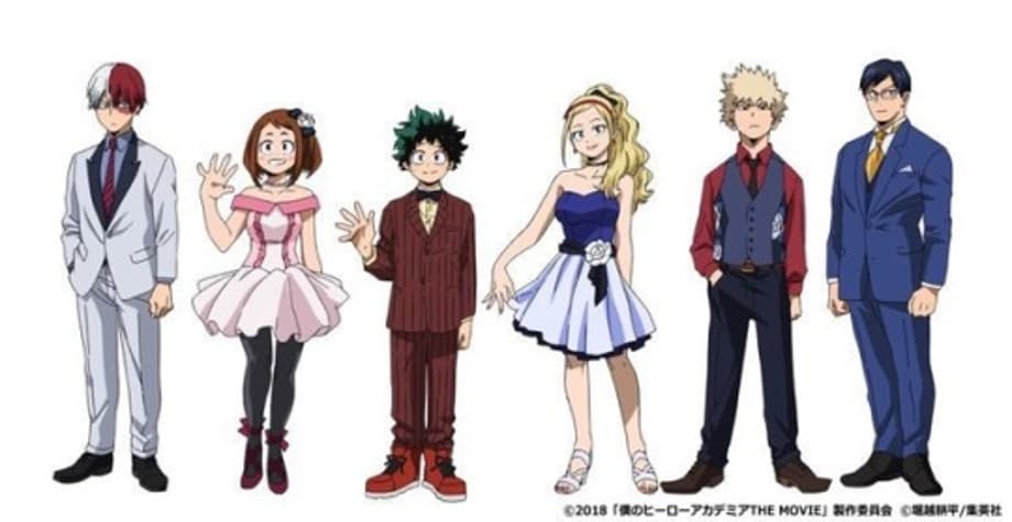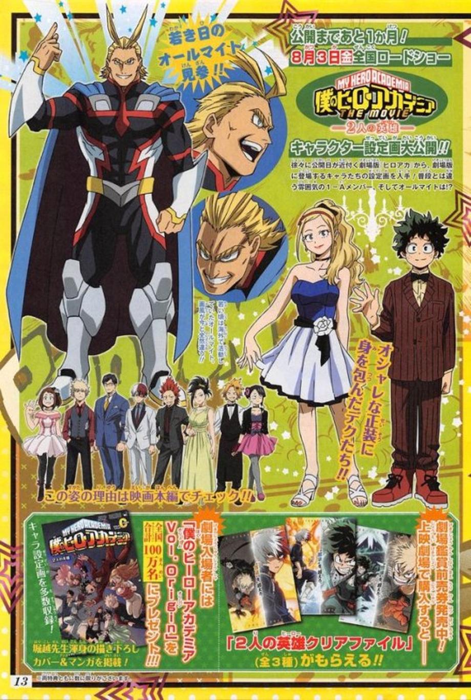 As you can tell, the film will flashback to All Might's younger days as well as depict events in the present.  U.A. High's trip to a mysterious floating island will apparently include a party or ceremony as shown by the attire worn by Deku and co.