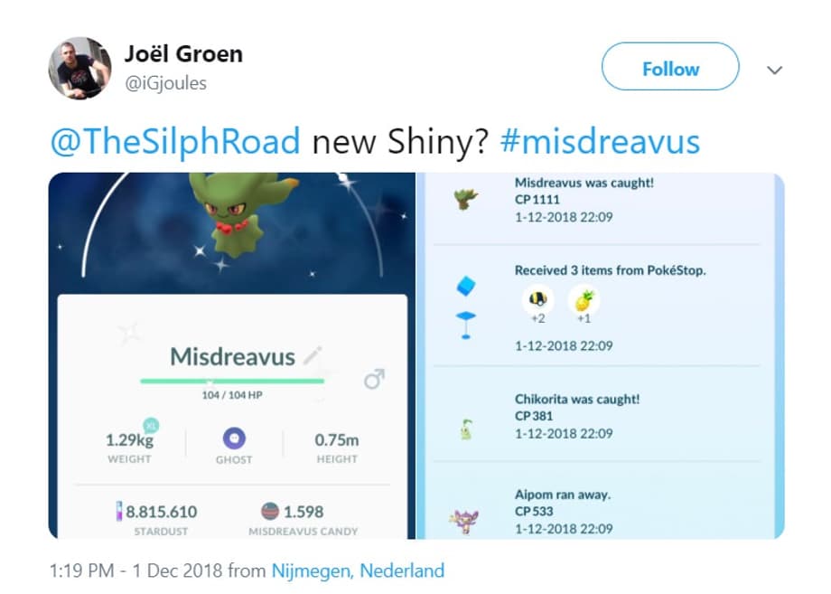 Of all of the types, however, the Ghost Type is arguably one of the most famous amongst fans. It houses fan favorite pokemon like Gengar and Misdreavus - with the latter being the star of the show today. In the tweet below, we can see that Niantic has chosen Misdreavus as the candidate for the latest shiny variant addition to the popular mobile game,