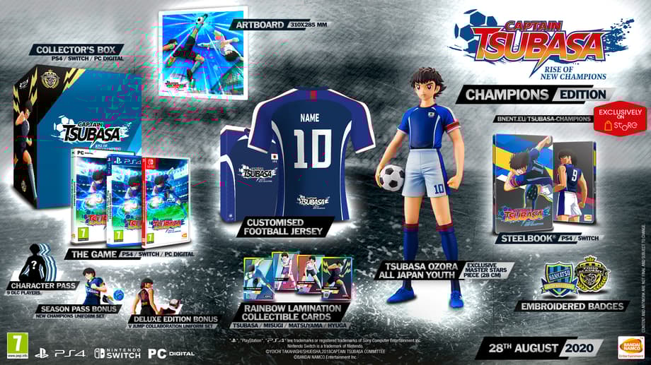 Captain Tsubasa: Rise of New Champions Champions and Collector's editions include pretty much the same collectibles — namely a physical copye of the game, steelbook, embroidered badges, customised, jersey and rainbow laminated cards, to name a few — but it is the Legends edition the one that takes the cake.